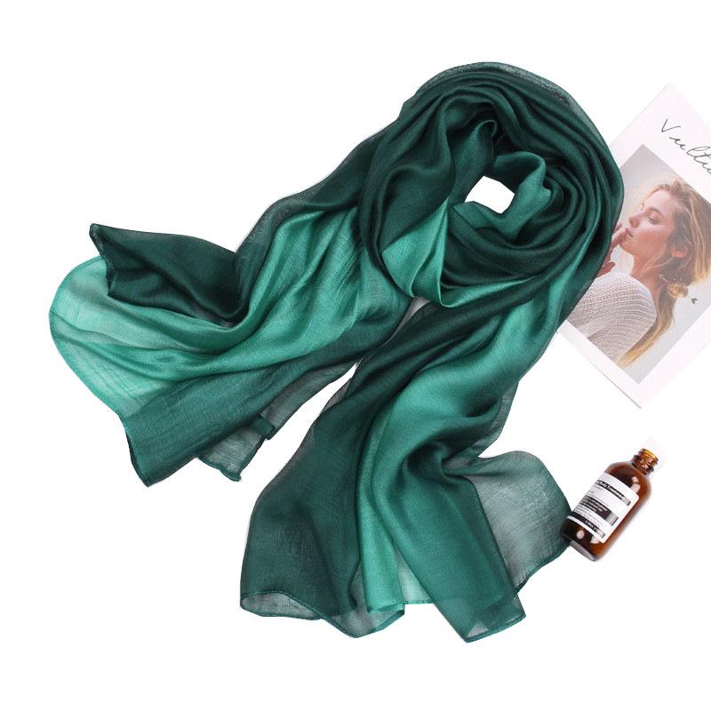 Dual-Use Gradient Mulberry Silk Scarf: Cotton, Linen & Silk Wrap for Women