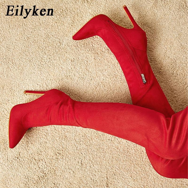 Fashion Eilyken Sexy Fashion Pointed Toe Over-The-Knee Boots Women Red Zipper High Heels Shoes Winter Striptease Motorcycle Long Botas
