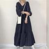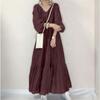 Damesmode zomer lente effen kleur print lange mouw V-hals hoge taille casual jurken