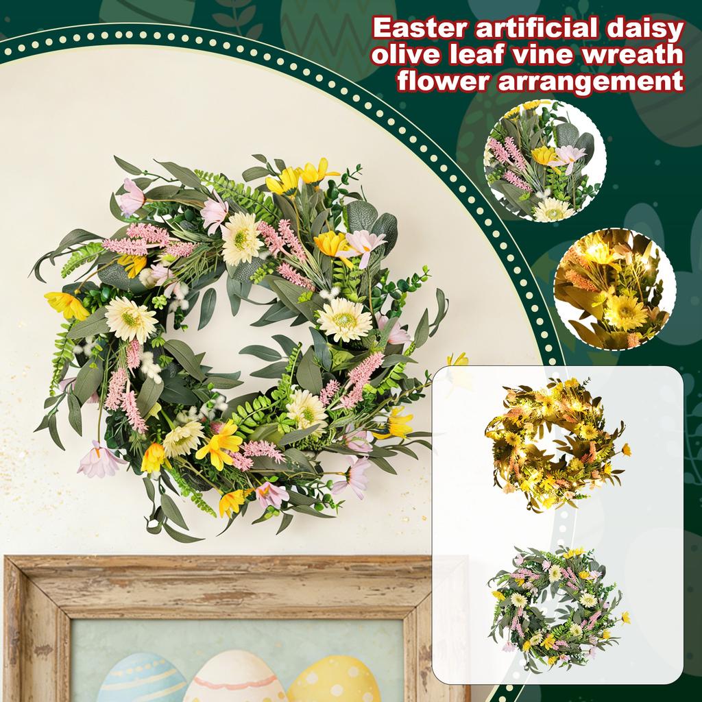3D 45cm Easter Simulation Olive Leaf Vine Wreath, Artificial Flower Glowing Home Decor Wall Hanging