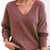 Damesmode Casual Effen Kleur Herfst Winter Lange Mouw V-Hals Losse Truien