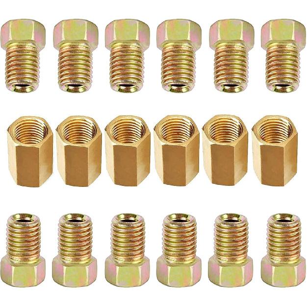 MuHize 3/16 Brake Line Fittings - Premium 18 PCS 3/8' 24 Threads Brake Fittings Assortment For 3/16' Tube (6 Unions, 12 Nuts)