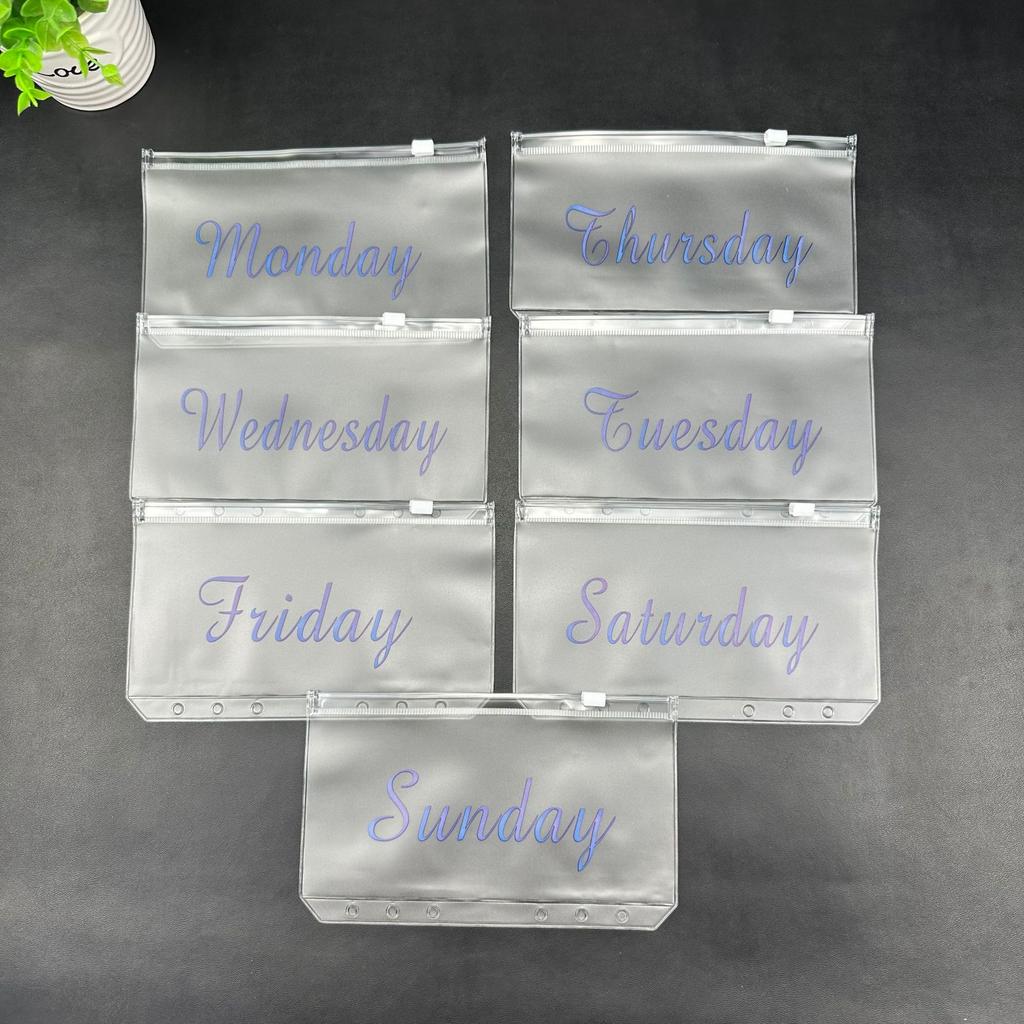 WTEMPO 7PCS A6 PVC Zipper Clear Envelope Bags Reusable Gift Bags Storage Pouches File Holders for Office Home Store Use Monday To Sunday Printed