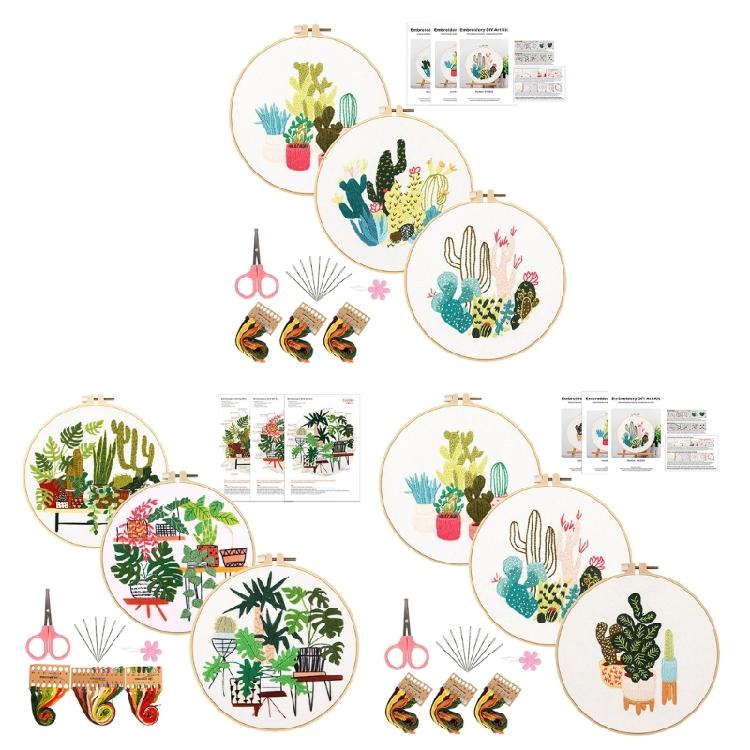 3Sets Beginner Embroidery Set Flower Embroidery Set for Adult with Instruction Pattern Hoop Thread Scissors and Needle