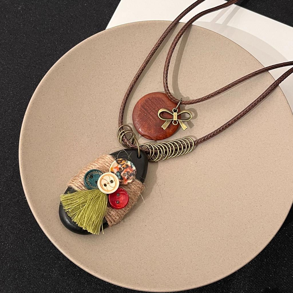 Retro Ethnic Style Necklace, Niche Creative Button Water Drop Pendant, High-End Classic Antique Style Necklace.