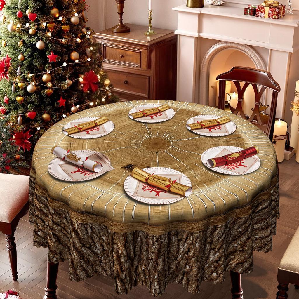 Log, Rectangle/Round Table Cloth, Natural Wood Grain Tree Tumor Retro Pattern, Table Decorative Cloth
