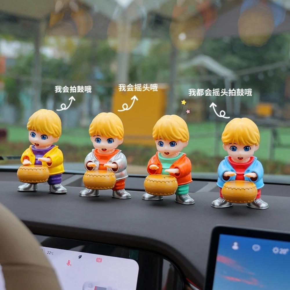 Hot New Solar Car Interior Ornaments Shaking Head Drumming Cartoon Swinging Drummer Automotive Dashboard Decoration