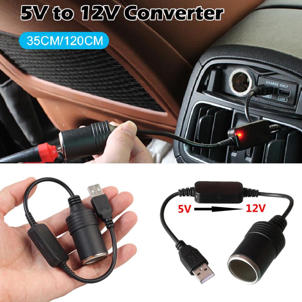 Car 5V To 12V Power Converter Step Up USB Male To Cigarette Lighter Female Adapter Power Cable For Dash Cam Auto Accessories