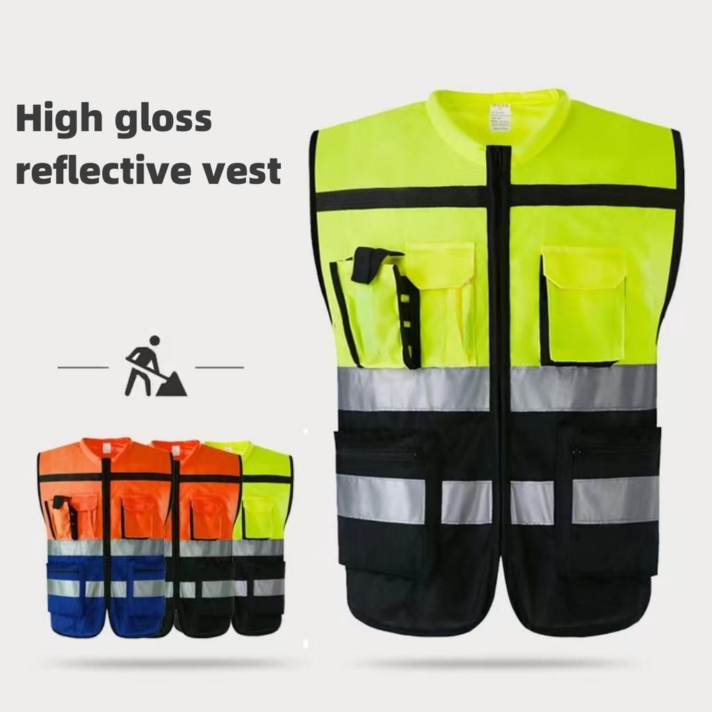 New Reflective Vest Spliced with Multiple Pockets Reflective Clothing Construction Cycling Duty Fluorescent Reflective Vest