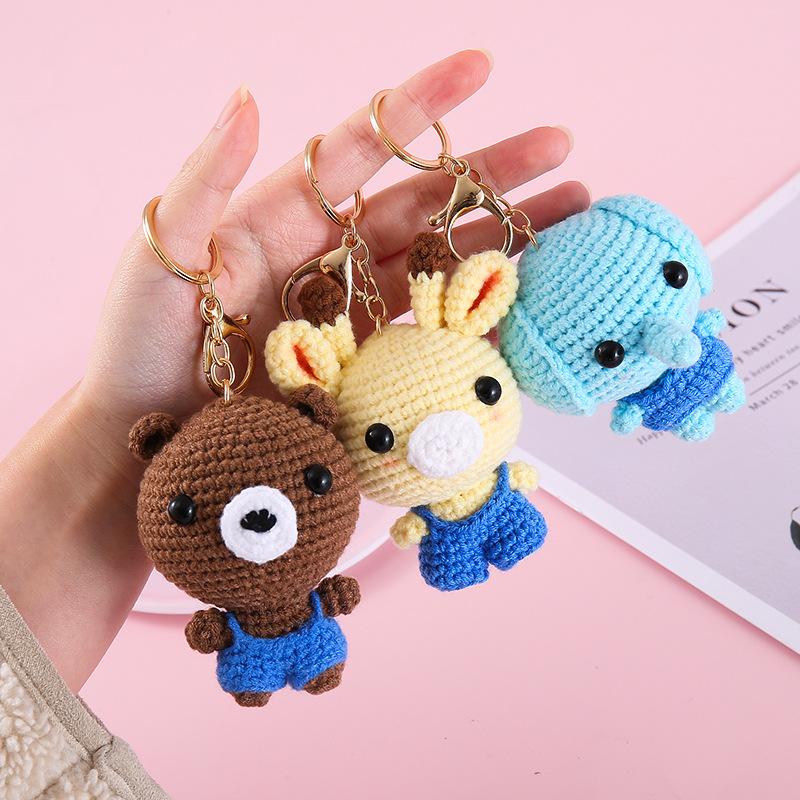 Funny Animal Doll Series Crochet Keychain Creative Knitting Animal Doll Keyrings For Bag Pendant Cute Puppy Knitted Car Keyrings