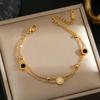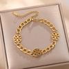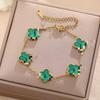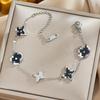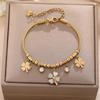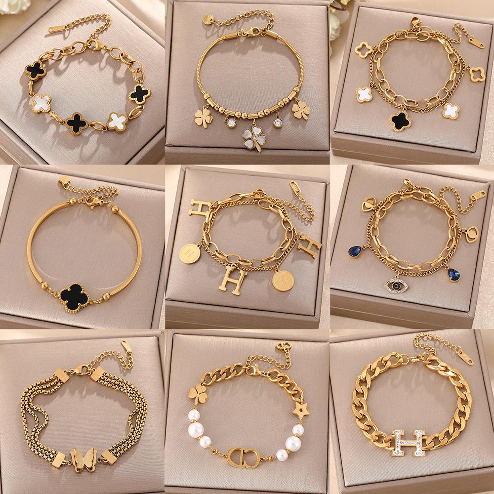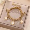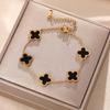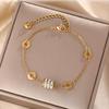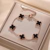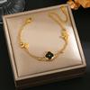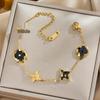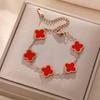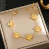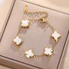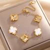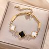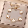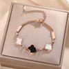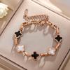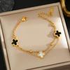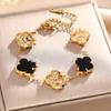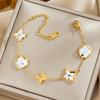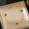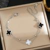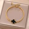 Luxe Titanium Staal Vierbladig Klaver Armband in Koreaanse Stijl met Ingelegde Diamanten voor Vrouwen - Kleurvast