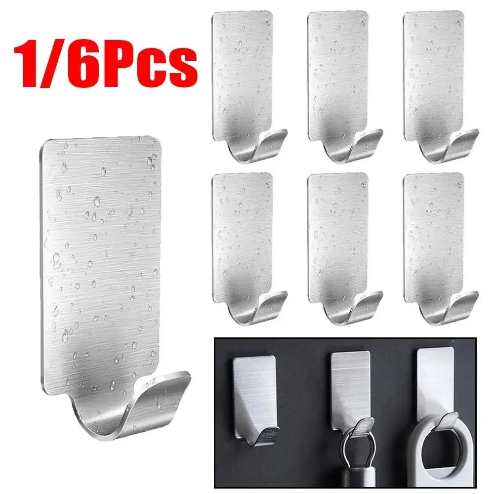 1/6PCS Kitchen Bathroom Wall Hanger Hook Small Stainless Steel Bathroom Organizer Multi-purpose Self Adhesive Towel Rack Hanger