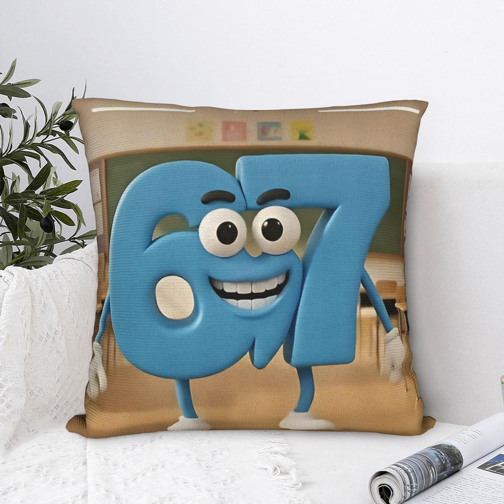 67 Six Seven Meme Pillow Cover Brainrot Print Cushion Cover Funny Pillow Case For Sofa Couch Bed Living Room