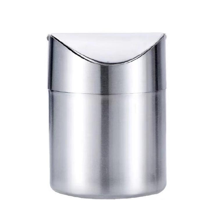 Ruimtebesparende Klapdeksel Bureau Afvalbak Roestvrij Staal Zilver Kleine Prullenbak Afvalbak Voor Huis Kantoor Organisatie