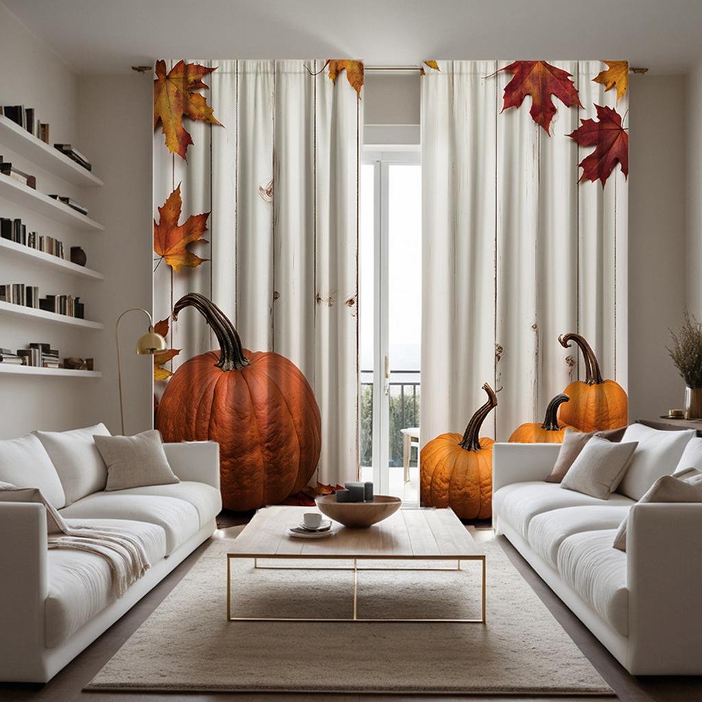 2 stuks HD Thanksgiving pompoen Esdoornblad Tuindecoratie gordijn Geel lint digitaal bedrukt gordijn Huisdecoratie stijl De