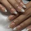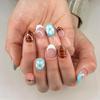 30 Pcs Orange Press on Nails Short Almond, YIHONGYAN Spring Reusable Fake Nails with 3D Flowers Gilded Design Acrylic Nail Kit Glue on Nails Full