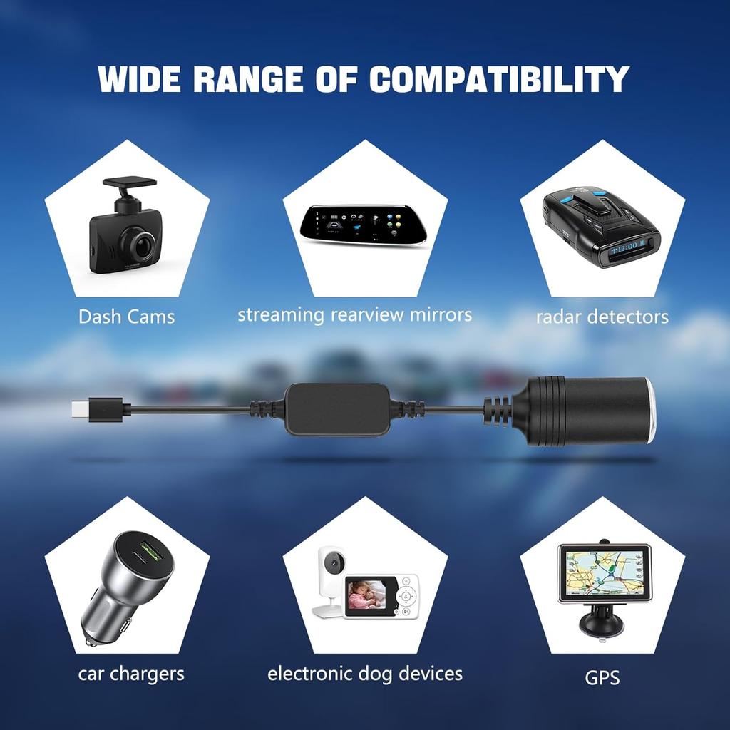 USB C to Cigarette Lighter Adapter, USB C Male to 12V Car Cigarette Lighter Socket Female Converter Cable, 12V 18W Power Cable for Dash Cam, GPS, Car