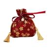 Stripe Canvas Flower Drawstring Bag Sakura Wedding Candy Bag Portable Ribbon Bow Wrist Bag Party