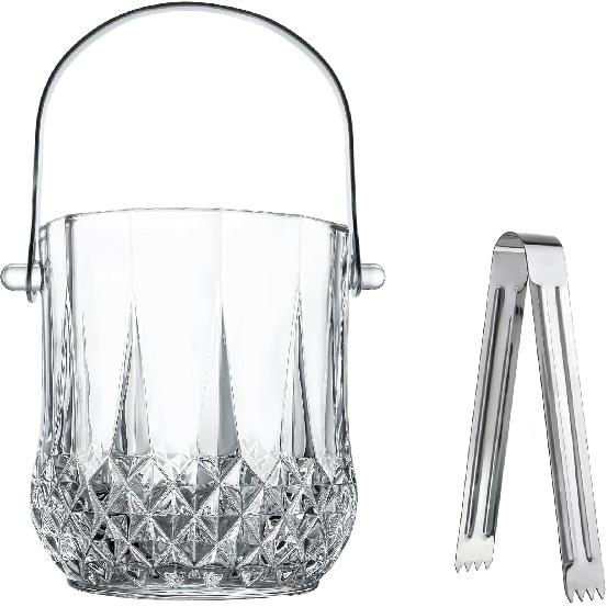 Glass Ice Bucket with Handle and Ice Tong Holds 37oz of Ice Clear Crystal Ice Buckets for Cocktail Bar Wine Home Bar Accessories Parties Clear