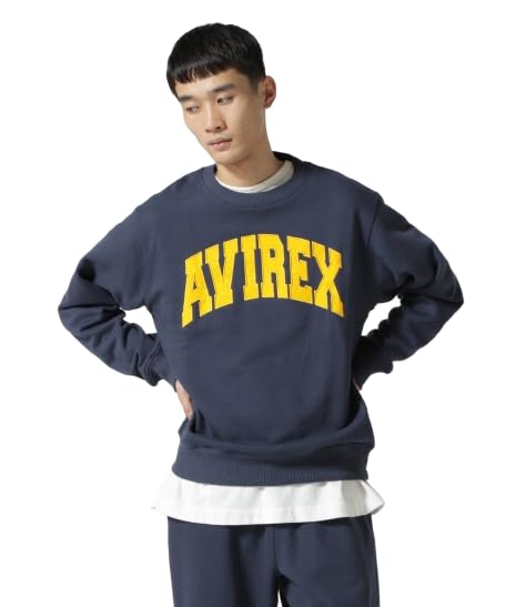 Avirex DAILY Crew Neck Long Sleeve Sweatshirt with Logo, Men's Size L (120), Navy (Product Code: 783-3932003)