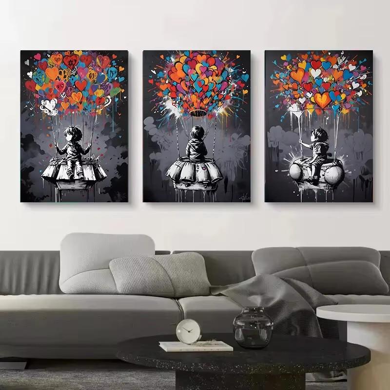 Street Graffiti Posters Print Children's Hot Air Balloon Love Canvas Painting Cartoon Pop Wall Art Picture Home Kid Room Decor