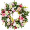 DearSun 11.2" Spring Wreath Easter Wreath with Flowers, Eggs, Green Leaves and Twine, Hanging on Home Indoor Outdoor Front Door Wall