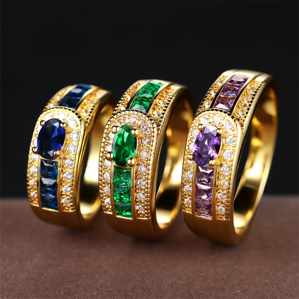 Blauw Paarse Kristal Ovaal Steen Ring Groen Zirkoon Verlovingsringen Voor Vrouwen Mannen Vintage Goudkleurige Trouwringen Sieraden