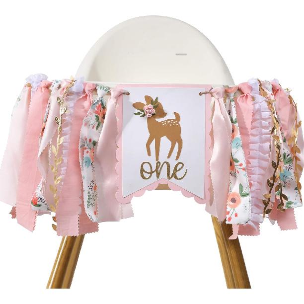 Deer Floral Girl High Chair Banner - Little Miss One-Deerful Highchair Banner, Woodland 1st Birthday Decoration for Girls, Deer Girl Floral 1st