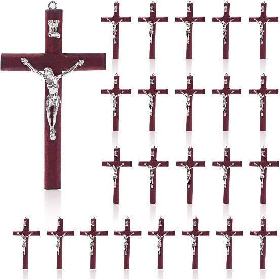 SHAOQINLIN 24 Pieces Crucifix Wall Cross, 4.7 Inch Wooden Wall Hanging Cross Wall Decor Home Decor