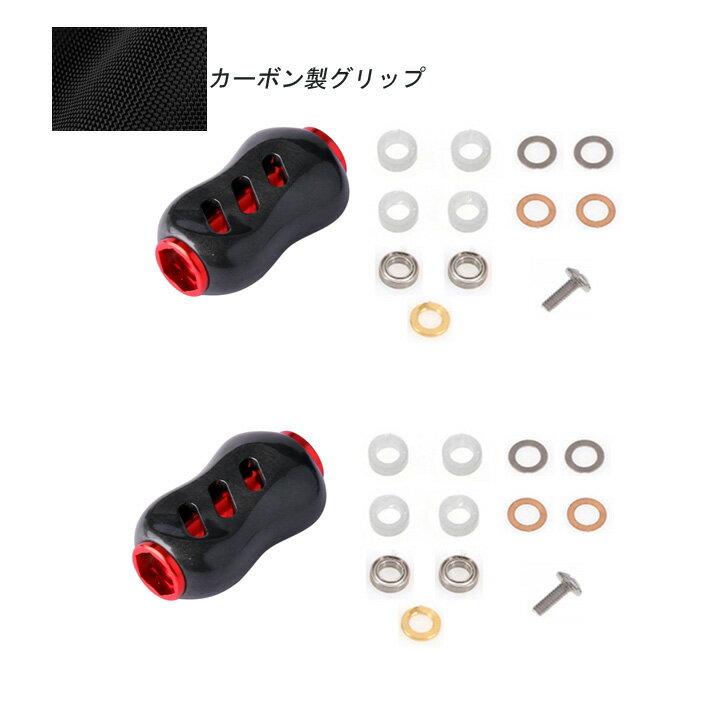Reel handle knobs set two (black red) carbon grip custom parts fishing lure replacement spinning reels baitcasting double handle.