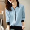 ZANZEA Women Casual Turn Down Collar Solid Color Loose Long Sleeve Blouse