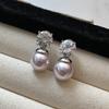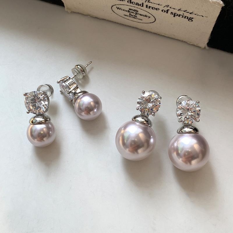 S silver needle rose purple pearl earrings women's light luxury 5A zircon stud earrings real gold electroplating new earrings