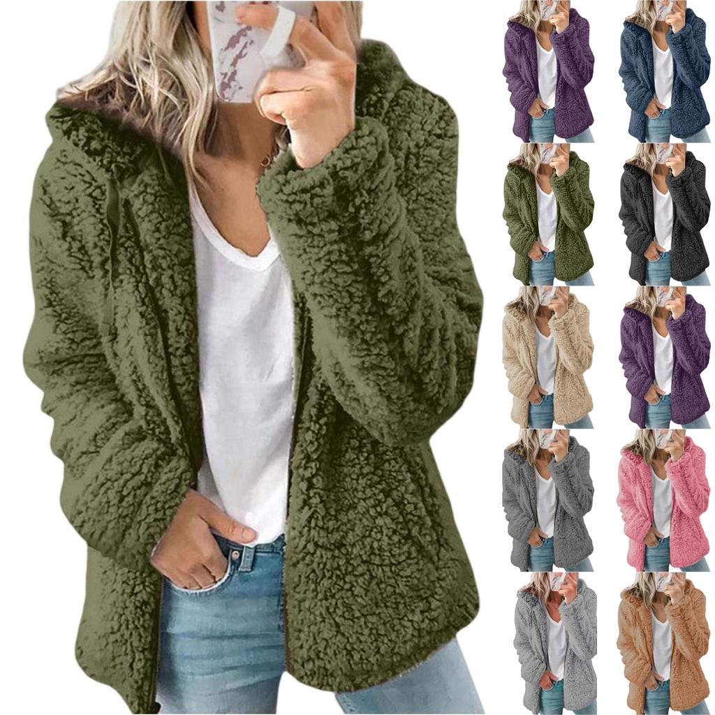 Women's Plaid Zipper Loose Plush Casual Jacket