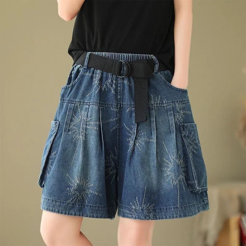 Women's Fashion Embroidered Denim Shorts Comfortable Daily Summer High Waist