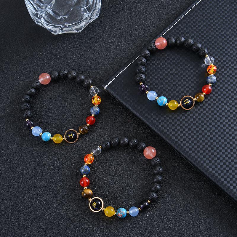 Solar System 12 Constellation Bracelet For Men And Women Volcanic Stone Hand Beaded Colored Stone Stretch Hand