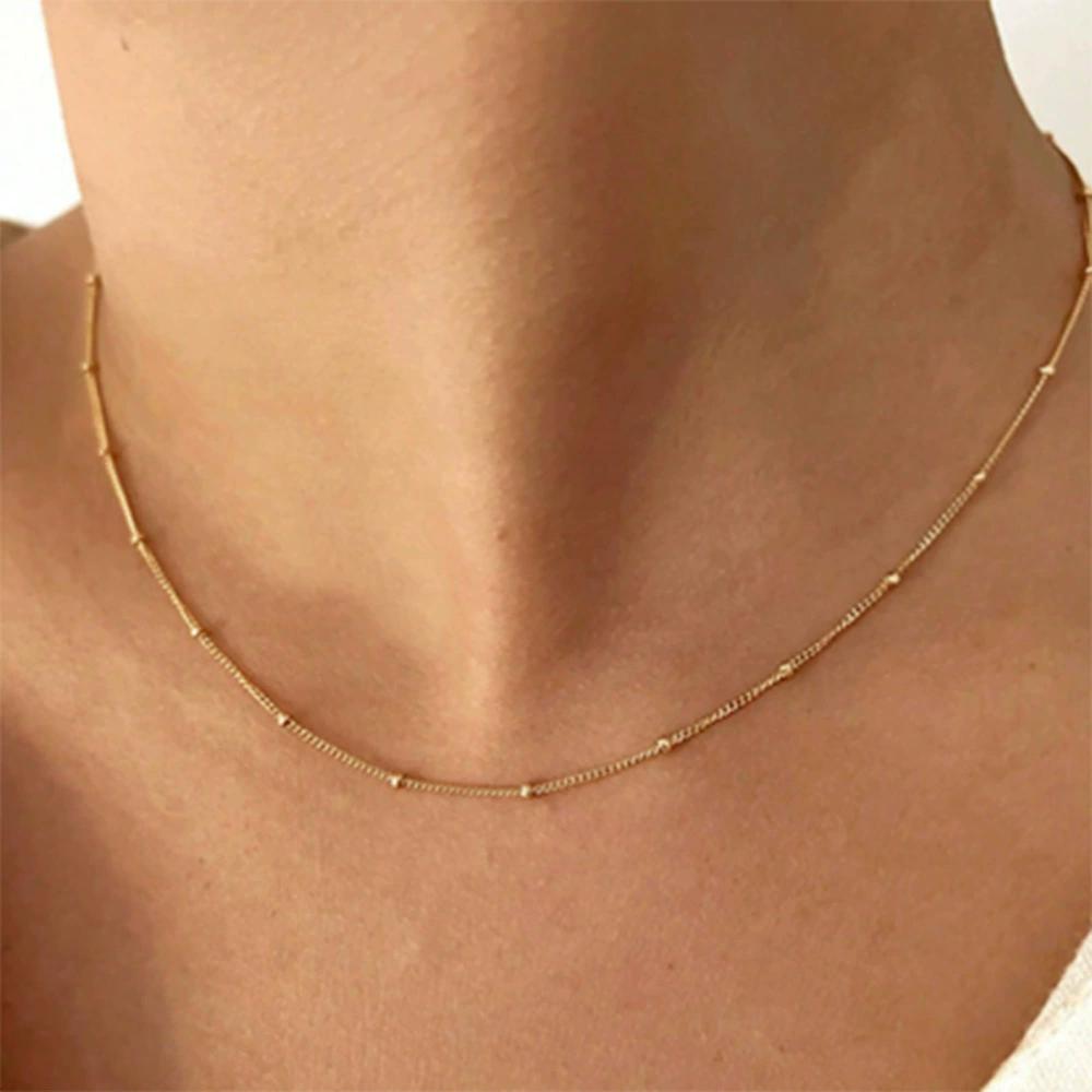 Stainless Steel Chain Necklace for Women Gold Color Thin Choker Bead Chain Necklace Wholesale Dropshipping