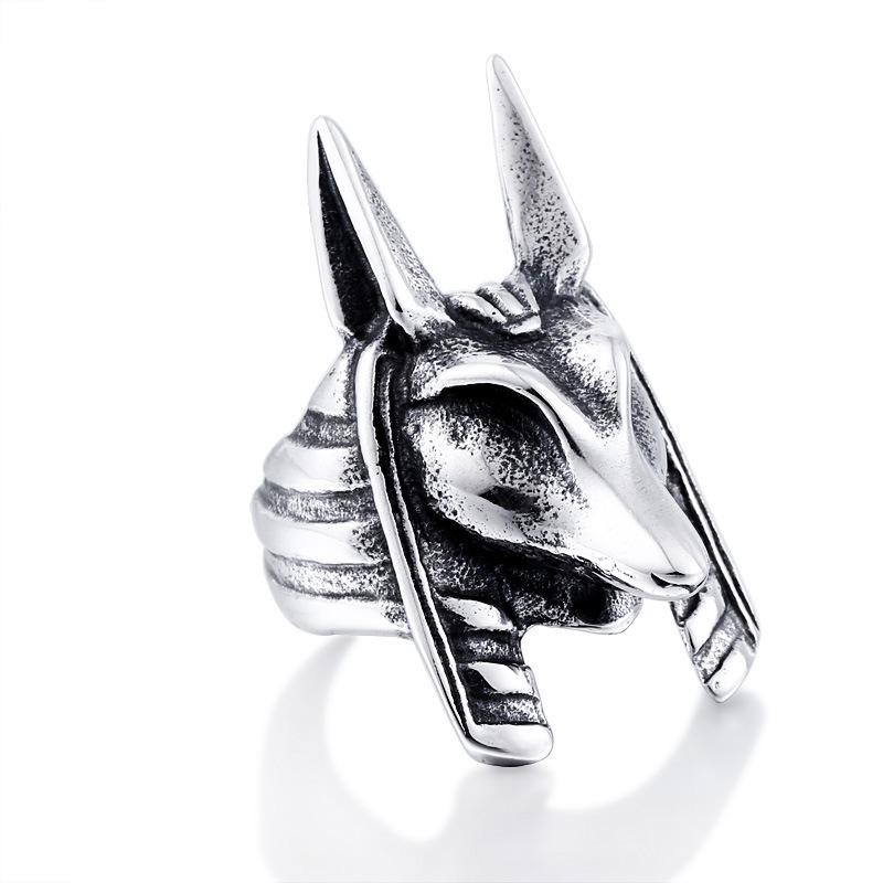 Retro Anubis Large Ring For Men Silver Color Punk Gothic Rock Hiphop Open Ring Handmade Designer Biker Accessories Gift