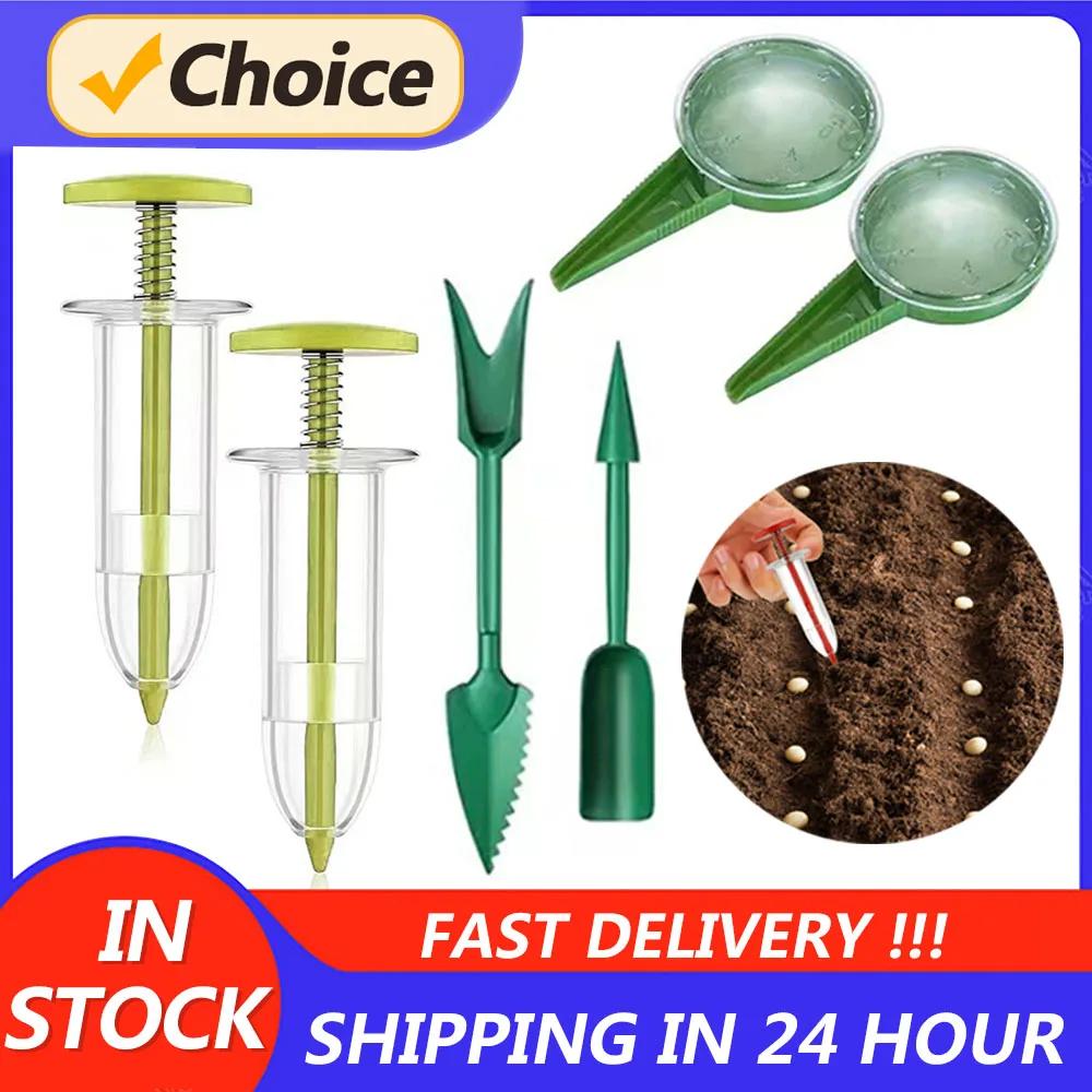 1-6Pcs Mini Sowing Seed Dispenser 5 Different Settings Plant Seed Sower With 2 Transplanting Tools Home Garden Seeding Dispenser