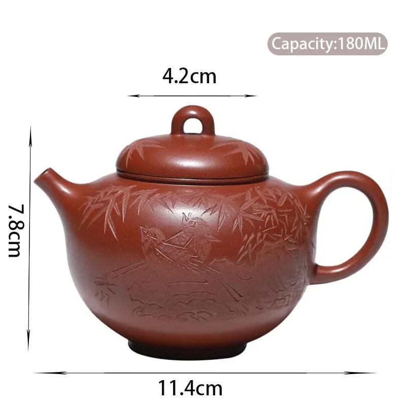 180ml Yixing Purple Clay Teapot Kettle Master Hand-carved Bird Bamboo Leaf Tea Pot Tea Infuser Chinese Handmade Zisha Tea Set