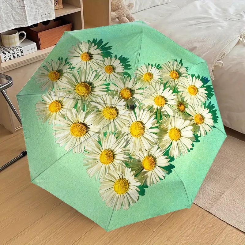 1pc Daisy Heart Automatic Folding Umbrella, Heavy Duty 8 Rib Iron Frame, Suitable for Travel, Daily Use, Birthday, Decor Gift 52