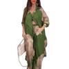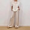 Stijlvolle en comfortabele dames tweedelige set bestaande uit een lang shirt en wijde pijpen broek.