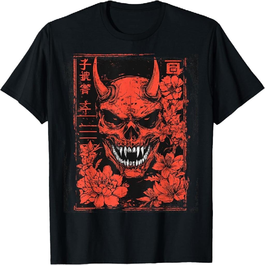 Duivelsgezicht Schedel Japanse Kunst Duivel Oni Harajuku Esthetisch T-shirt(2)