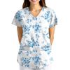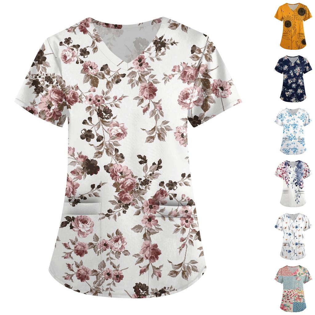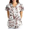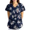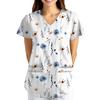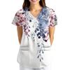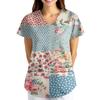 Plus size bedrukte scrub werkkleding tops voor dames met V-hals en print, korte mouwen, leuke T-shirts, werkkleding T-shirt met zakken