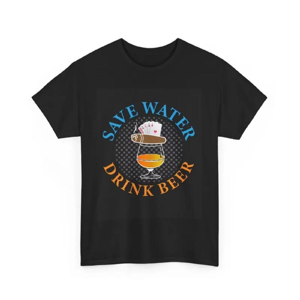 2025 Save Water Drink Beer Graphic Printing Summer Luxury Brand Cotton Men's and Women's T-Shirts Short Sleeves Street Fashion
