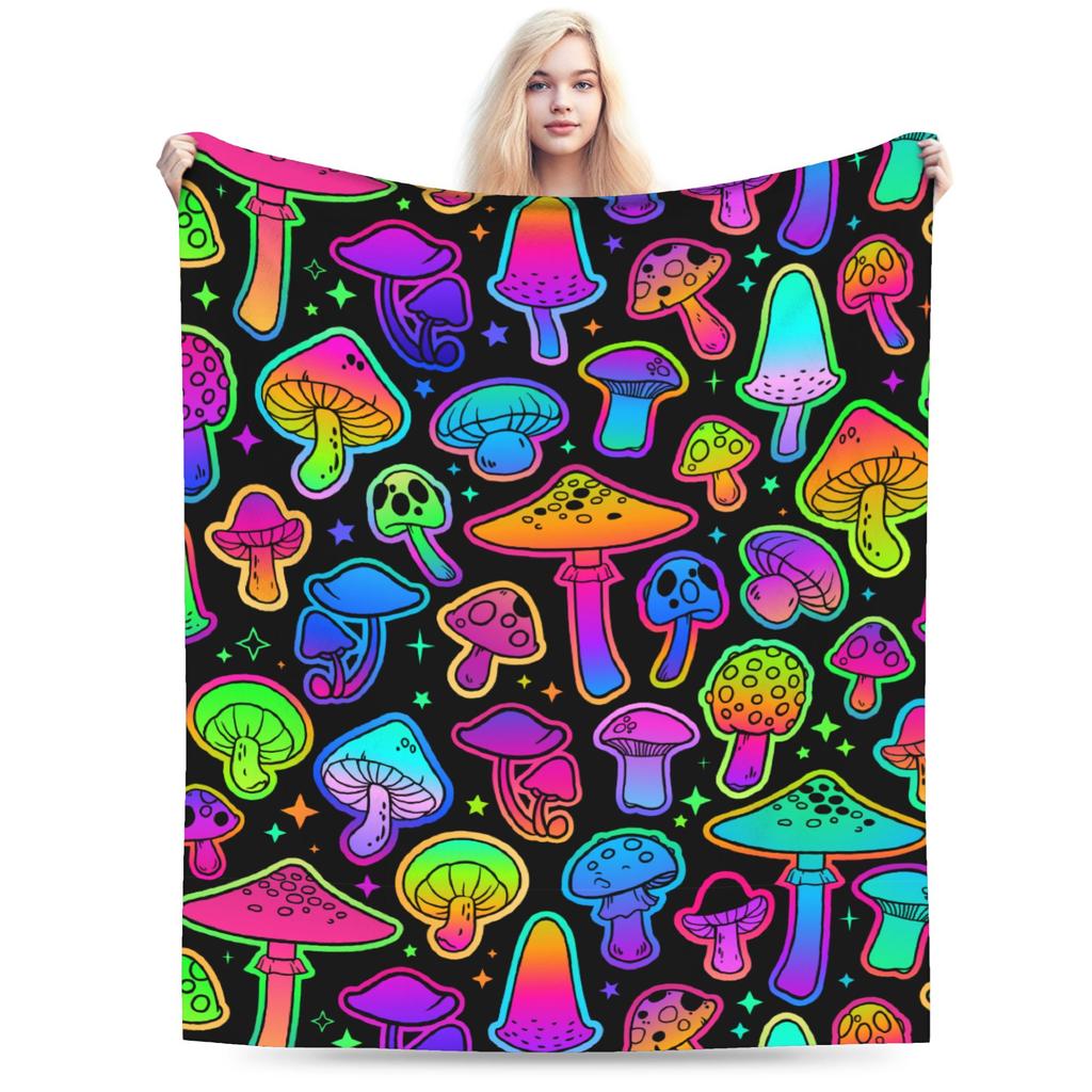 Bright Psychedelic Mushrooms Blanket Coral Fleece Plush Spring/Autumn Multi-function Soft Throw Blanket for Bed Car Quilt