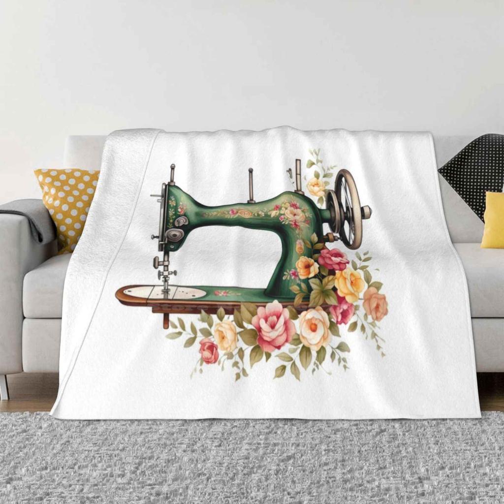Vintage Sewing Machine Fashion Soft Warm Flannel Blanket Retro Fashion Seamstress Tailor Vintage Sewing Machine Dressmaker