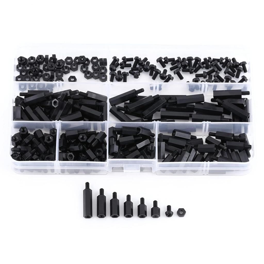 Walfront 250PCS Nylon M3 Hex Male Standoff Spacer Screw Nut Assortment Kit (M3 Male Standoff A) Black