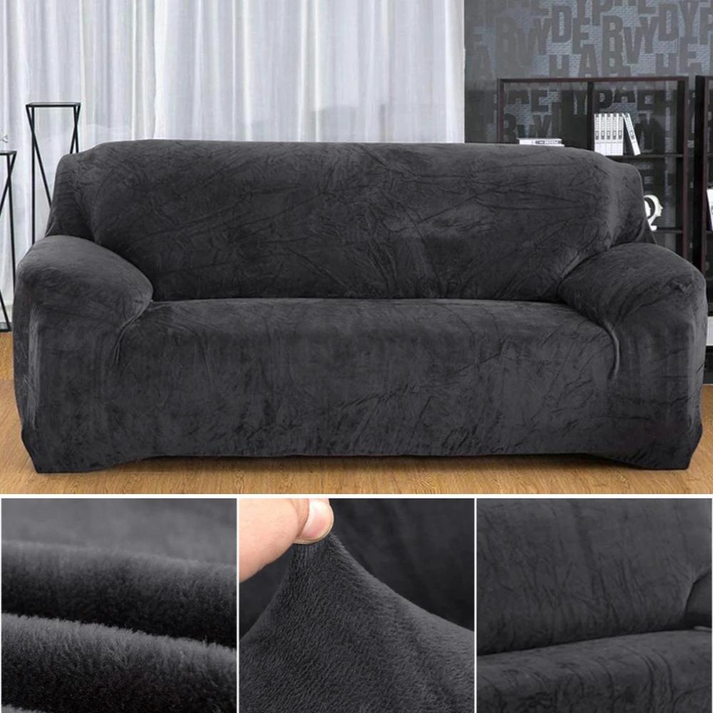Stretch Velvet Couch Cover for Cushion Couch Covers Sofa Slipcovers with Non Skid Foam Elastic Bottom Furniture Protector