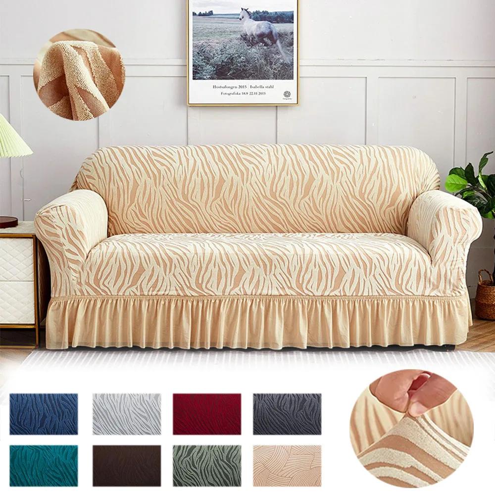 1PC Jacquard Stretch Full Cover Dustproof Sofa Cover Skirted Sofa Covers1/2/3/4Seater Couch Cover Bedroom Living Room Home Decor