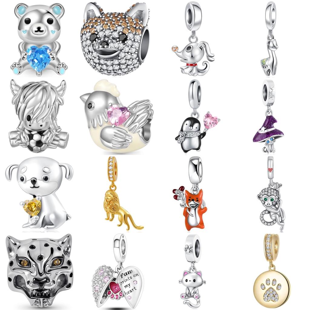 925 Silver Pet Charm Pendant Penguin Monkey Lion Paw Print DIY Bracelet Jewelry Gift for Women Fashion